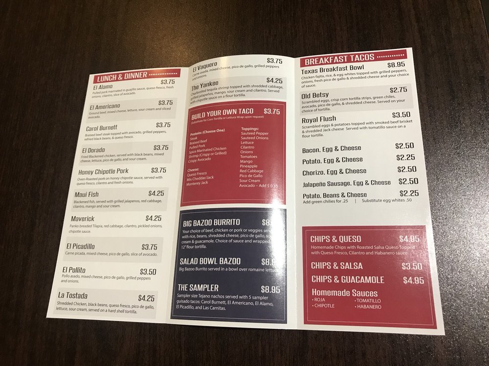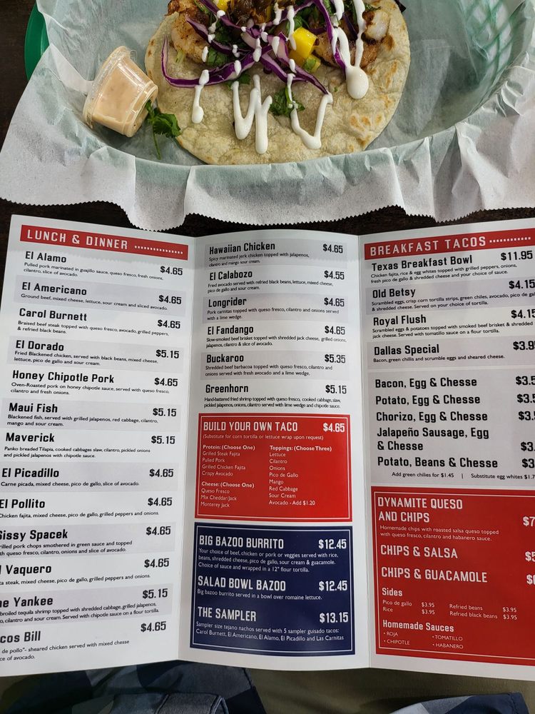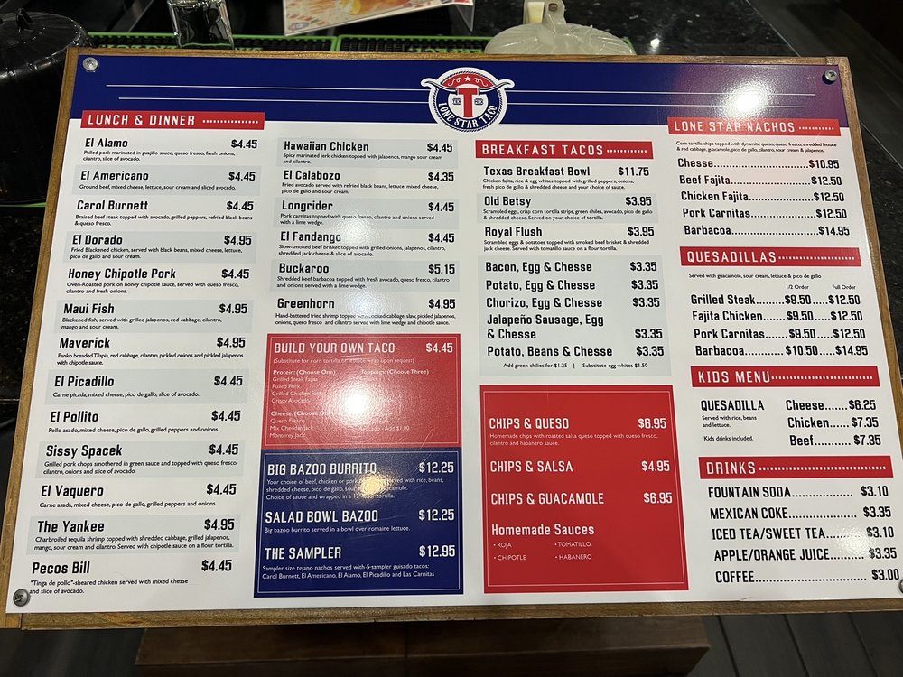 Introducing Lone Star Taco, a Tex-Mex gem located in downtown Houston. This casual yet classy spot offers a wide range of Tex-Mex tacos for breakfast and lunch, along with sides, kids' options, and specials. The breakfast tacos, such as the Dallas Special and Old Betsy, are a must-try, while lunch options like El Alamo and Maui Fish delight the taste buds. Customers praise the friendly staff, fast service, and delicious, flavorful food. The ambience is inviting, perfect for a quick bite or a leisurely meal. Lone Star Taco's attention to detail, from fresh tortillas to perfectly paired salsas, sets it apart as a go-to spot for Tex-Mex lovers. Don't miss out on their Happy Hour specials and full bar. Notable highlights include the dynamite queso, jalapeƱo sausage taco, and impeccable customer service. Lone Star Taco truly embodies the spirit of Tex-Mex cuisine with a modern twist.